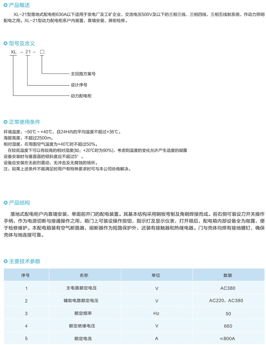 XL-21型落地式配電柜(630A以下)
