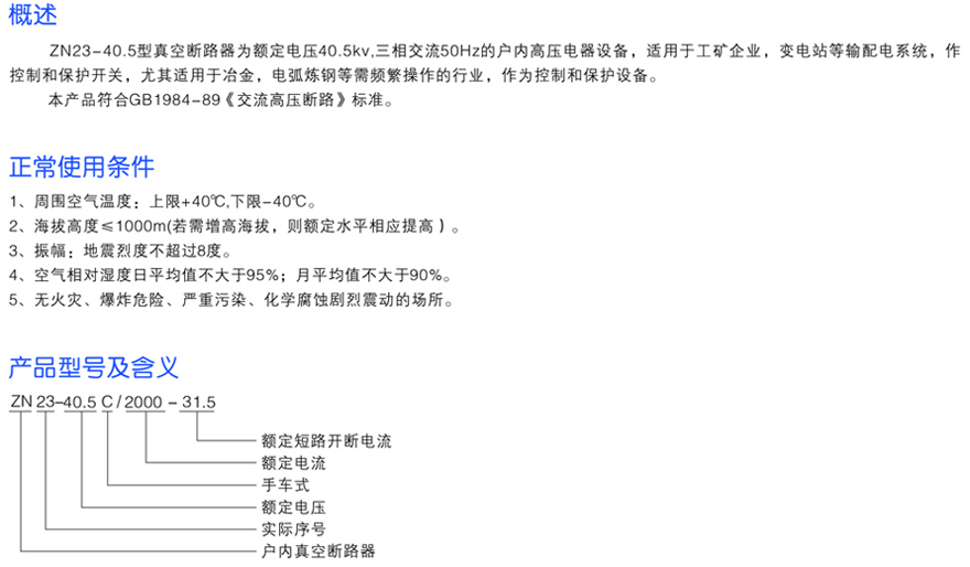 ZN23-40.5/2000-31.5戶內手車式真空斷路器